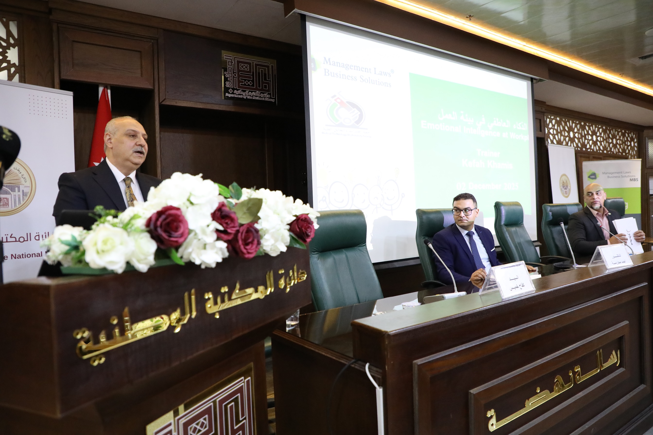 اقيم في المكتبة الوطنية مساء أمس الثلاثاء 2/12/2025 محاضرة بعنوان " الذكاء العاطفي في بيئة العمل" للدكتور كفاح خميس بتنظيم من جمعية المختبرات والتحاليل الطبية وشارك في المحاضرة كل من الدكتورة انعام صبيحات الدكتور أحمد المحارمة والأستاذ سامر حويطات.